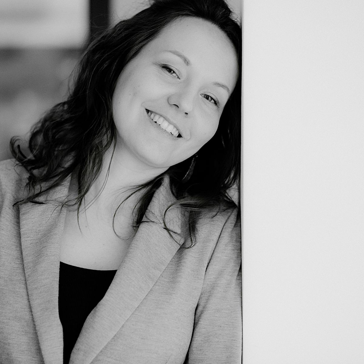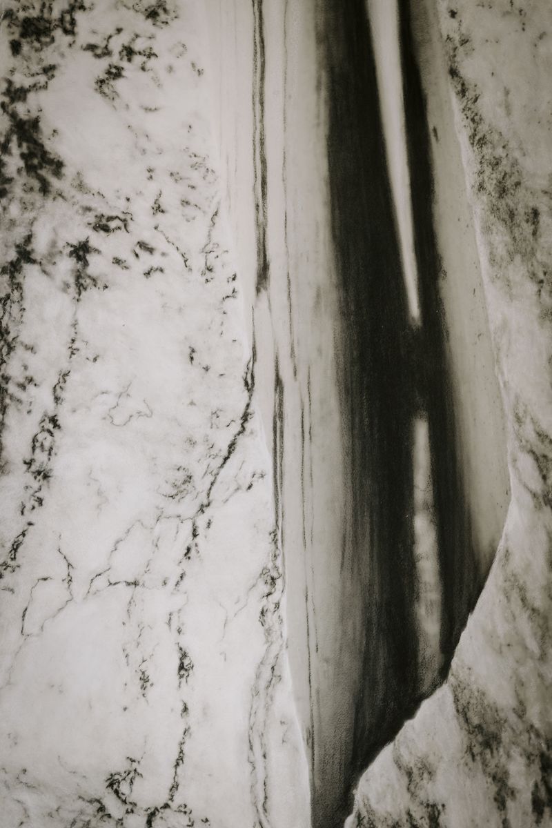 „Struktura linearis” skupia się na czerni, bieli i szarościach oraz na materialności linii — od płócien malowanych z dużą precyzją, przez rysunki o wyraźnej strukturze, po prace łączące techniki fizyczne i cyfrowe. Artystka przygląda się fakturom i kształtom natury — pęknięciom kamieni czy rysunkom słojów drzew — a fotografie, delikatnie opracowane pastelami i węglem, zyskują miękką, intrygującą powierzchnię. Mniejsze formy stają się pomostem między tradycyjną materią a przestrzenią wirtualną.